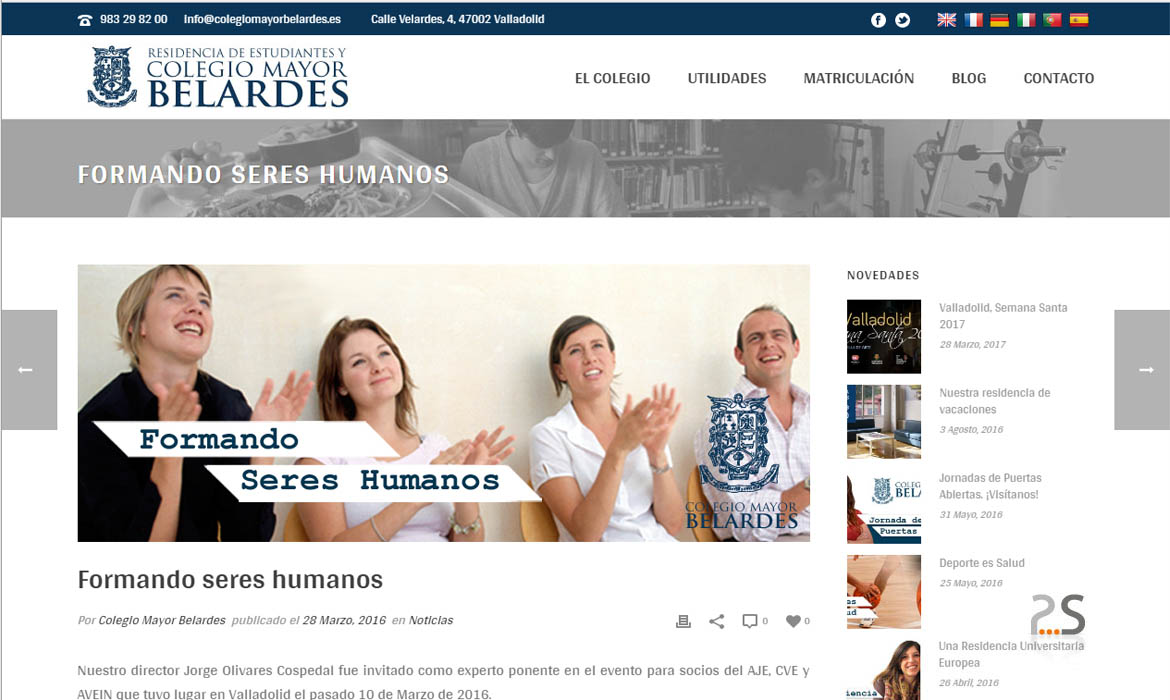 En el caso de colegiomayorbelardes.es ante la necesidad de activar un certificado SSL hemos aprovechamos para realizar cambios estéticos y de programación.