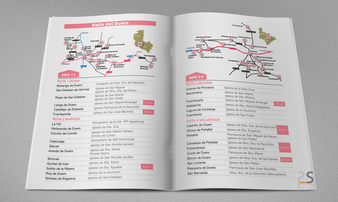 1 Mudéjar, al Sur del Duero, 2 Arribes del Duero, 3 Románico Norte, 4 Sierras del Sur, 5 Valle del Silencio y El Bierzo, 6 Soria Norte, 7 Valle del Duero, 8 Románico Sur, 9 D.O. Toro, 10 Ciudades Patrimonio Mundial, 11 Campos y Páramos, 12 Románico Zamorano, 13 Camino de Madrid, 14 Camino Mozárabe – Sanabrés