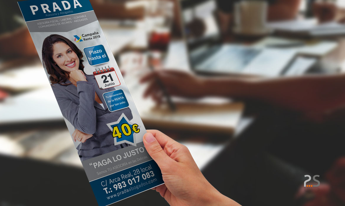 Campaña de marketing dirigida a obtener nuevos clientes y a fidelizar los existentes. Realizada mediante tarjetones distribuidos en la zona de influencia que se trata del entorno físico de la Calle Arca Real del Barrio de las Delicias de Valladolid. Se trata de una campaña que se realiza todos los años para una asesoría fiscal, coincidiendo con la campaña de la renta de las personas físicas. El objetivo es llegar al vecino de la zona ofreciendo precios muy competitivos en el desarrollo de su declaración y como además disponen de asesoramiento jurídico y gestión de comunidades de vecinos, atraer clientes a los que poder ofrecerles un servicio más global.
