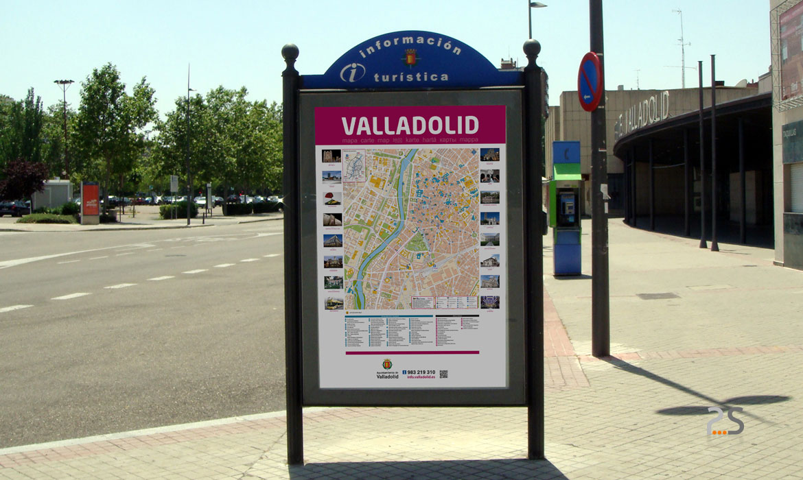 En la ciudad de Valladolid disponemos de 12 mupis. Se tratan de soportes publicitarios distribuidos en puntos clave de la ciudad donde hemos colocado un mapa con información de museos, estatuas y edificios de mayor interés para que los turistas que se acercan a conocer nuestra ciudad no se pierdan ninguno de nuestros monumentos imprescindibles.