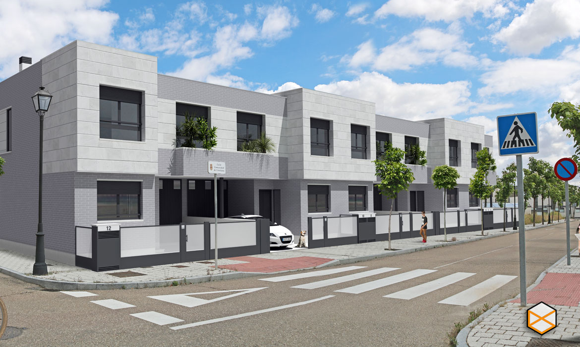 Las viviendas se construirán en el primer solar de la Calle Comunidad de Cataluña frente a la arboleda, una zona muy tranquila totalmente residencial. Las viviendas serán adosadas conformadas en dos plantas, en las que tendremos una habitación, baño completo, salón, cocina, jardín y garaje en planta baja y otras tres habitaciones, dos baños y terraza en planta primera.