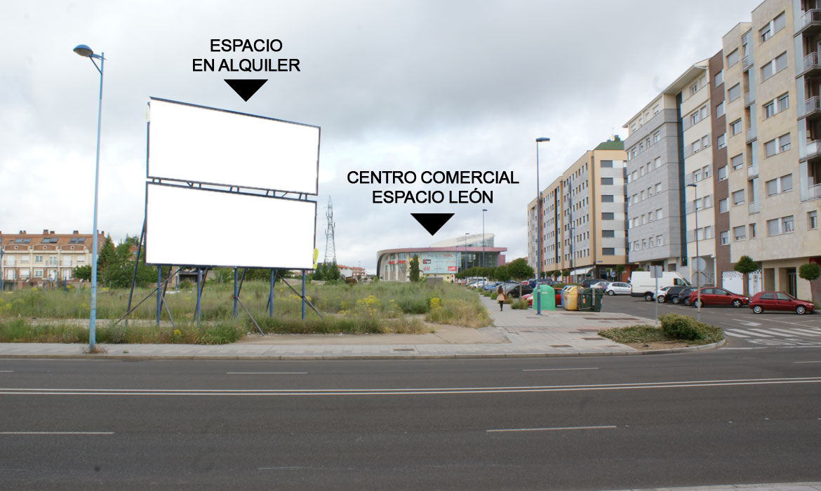Vallas publicitarias para alquiler situadas en rotonda carretera Caboalles de León junto al centro comercial Espacio León.