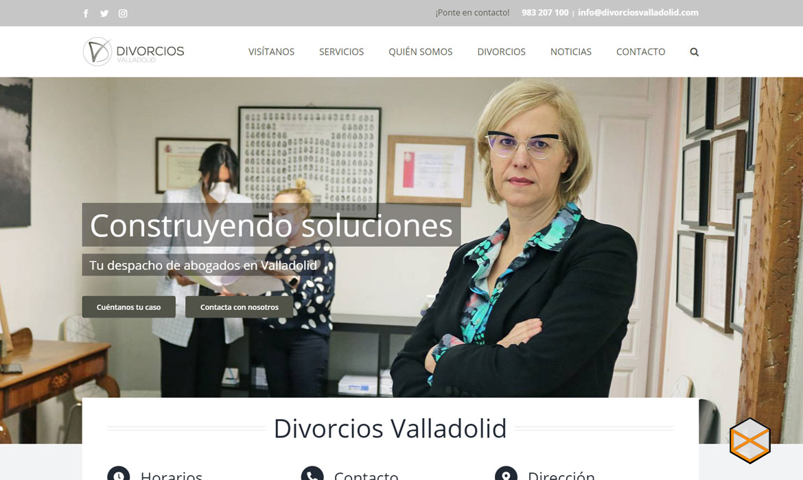 Creación de marca por nuestro creativo J.J.Berhó y diseño, programación y control de web para despacho de abogados especialistas en divorcios, con sede en Valladolid. María Jesús Viña como directora del despacho lleva más de 25 años especializada en este área y es una experta en mediación.