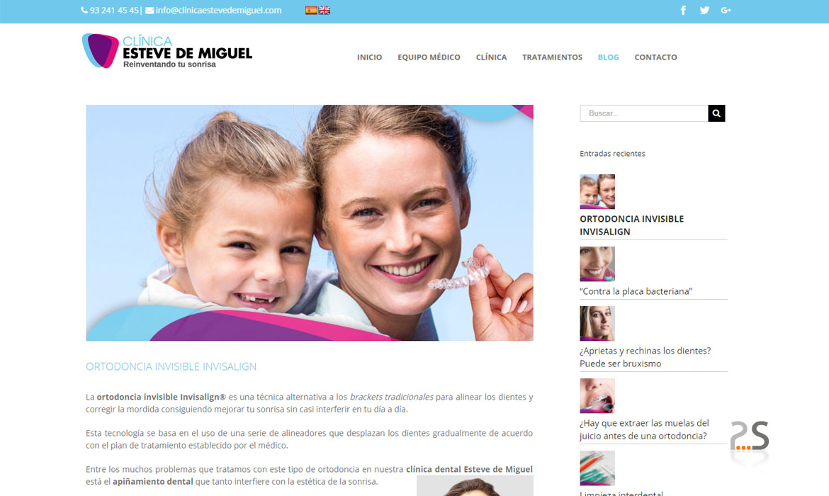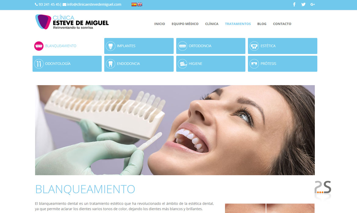 En Portalservicios somos líderes en SEO natural consiguiendo situar a nuestros clientes en los primeros puestos de las búsquedas orgánicas dentro de los principales buscadores Google y Bing. Ya son varios los clientes del sector de la salud que han confiado el diseño y programación de sus páginas web, posicionamiento SEO y control de campañas (SEM). Clínica Esteve de Miguel es una clínica dental con una trayectoria de más de 25 años en Barcelona, privada, familiar, de trato muy personal y que verdaderamente se preocupa por la salud bucodental de sus pacientes. Todos los profesionales de la clínica están en constante preparación, disponen de unas instalaciones modernas y recientemente renovadas para poder utilizar las últimas técnicas odontológicas, ortodoncia invisible, implantes dentales, etc.