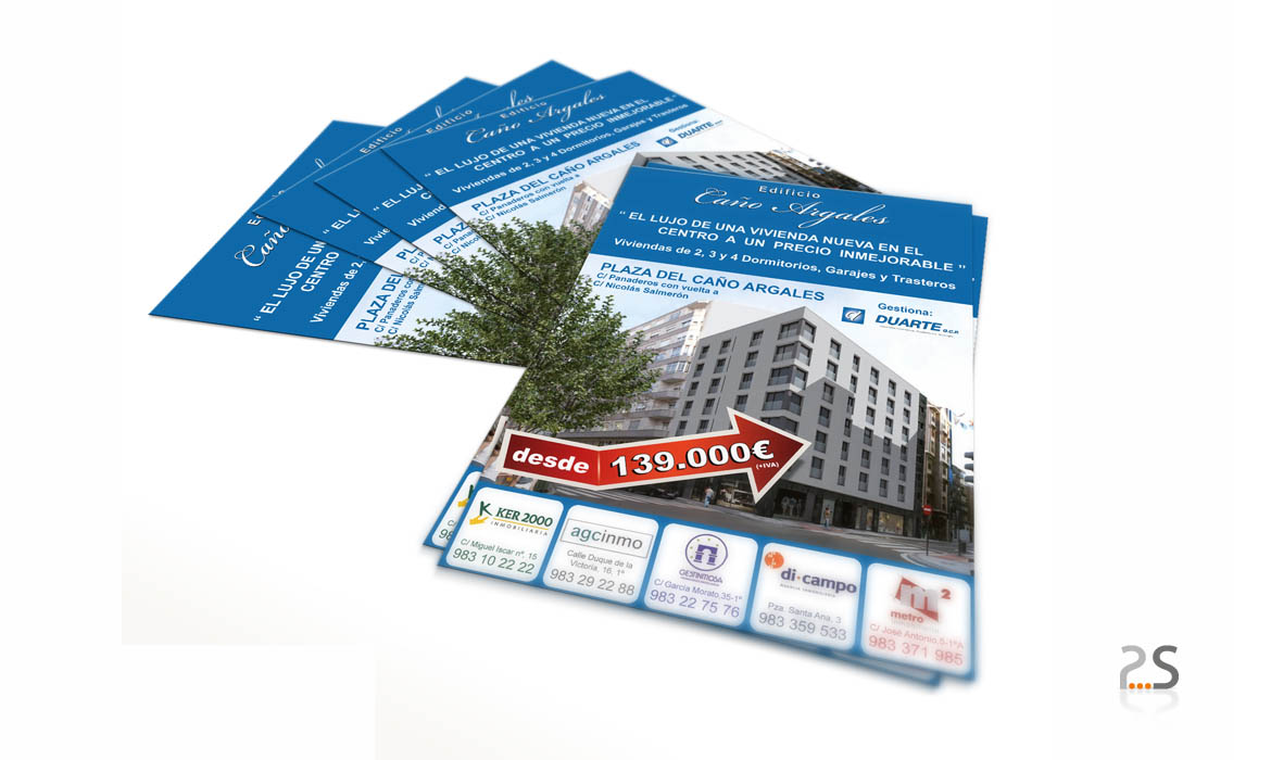 Diseño de flyer. Venta inmobiliaria Edificio en Plaza Caño Argales de ValladolidPortalservicios2022-01-18T09:07:02+01:00